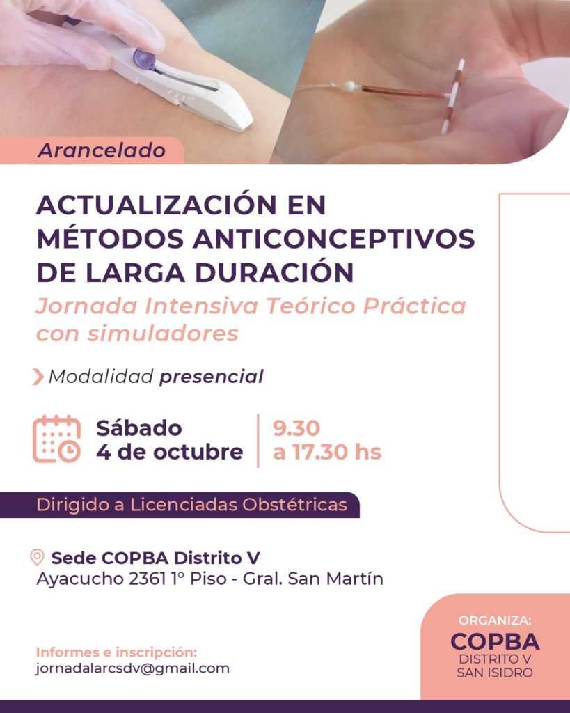 Esta capacitación está dirigida exclusivamente a Licenciadas/os Obstétricas/os que deseen profundizar sus competencias en la colocación, seguimiento y asesoramiento de métodos anticonceptivos de larga duración.