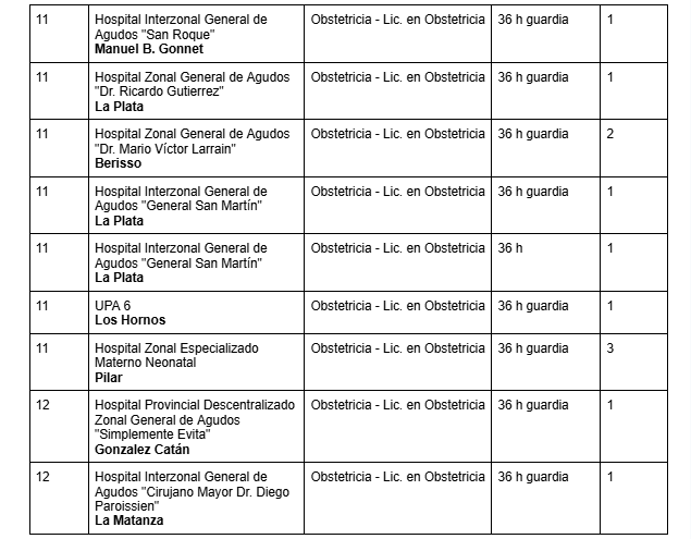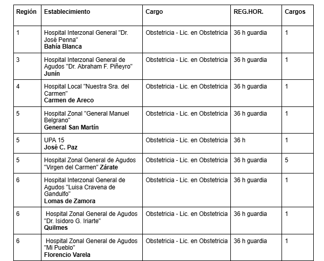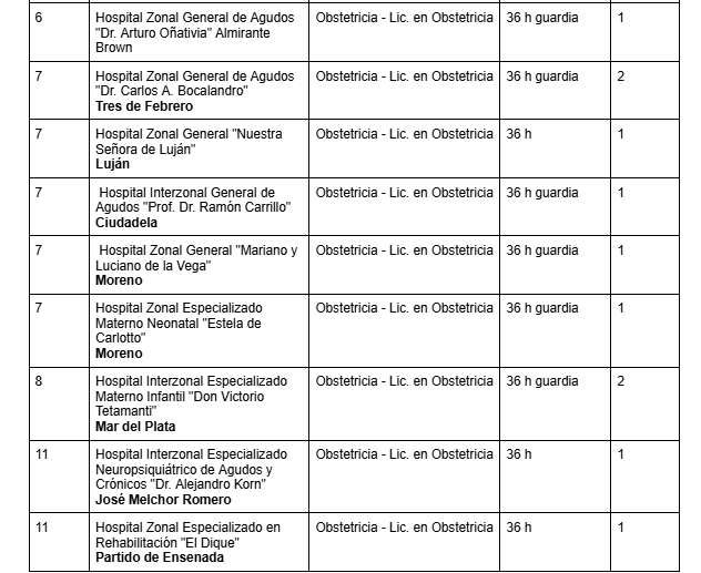 Cargos vacantes de Obstetricia y Lic. en Obstetricia en la provincia de Buenos Aires son: