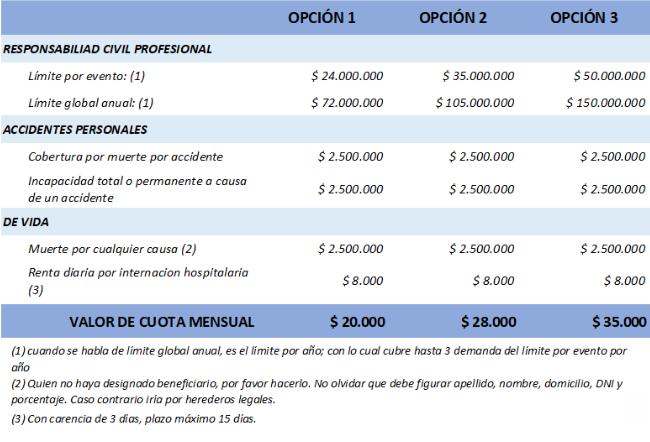 Informamos que la compañía Noble nos ha notificado los montos disponibles para la renovación del seguro profesional a efectuarse el 01/01/2026.